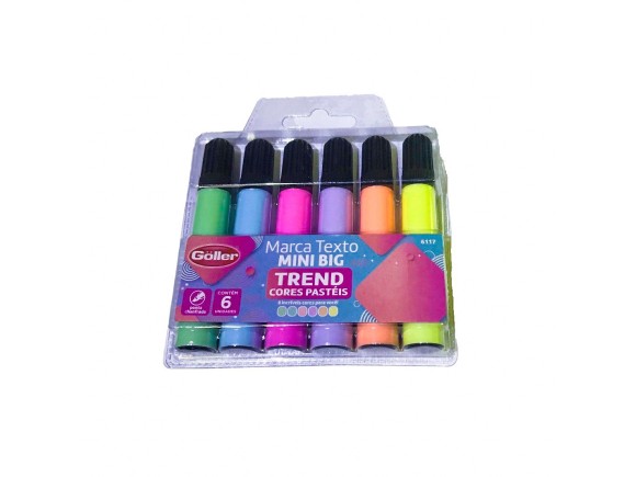 Marca Texto Color Trend 6 pçs Cores Tons Pastéis Mini Big Goller